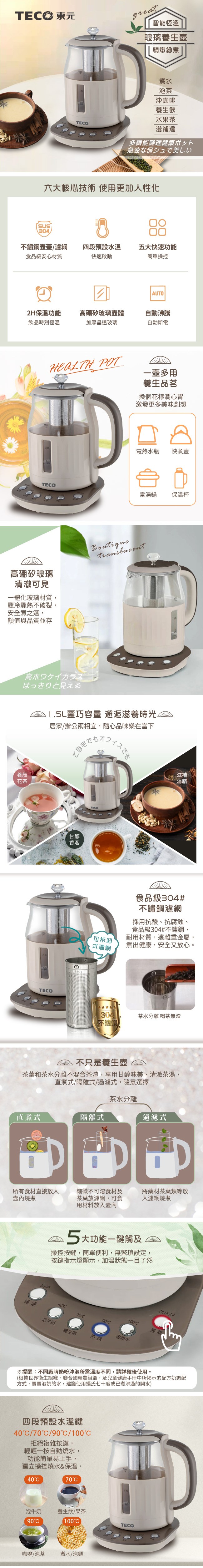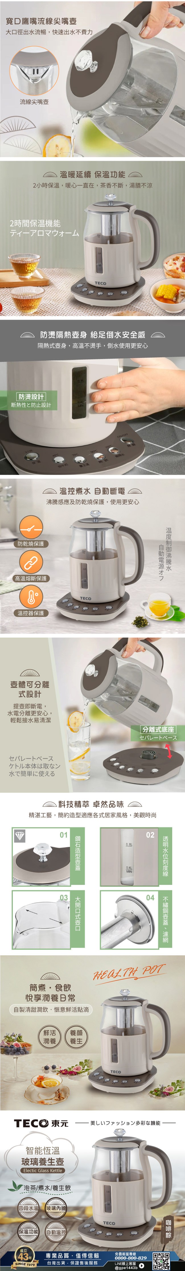 【TECO東元】智能恆溫玻璃電熱養生壺
