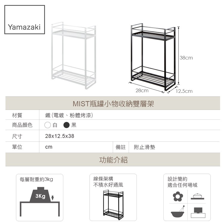 日本【YAMAZAKI】MIST瓶罐小物收納雙層架(白)