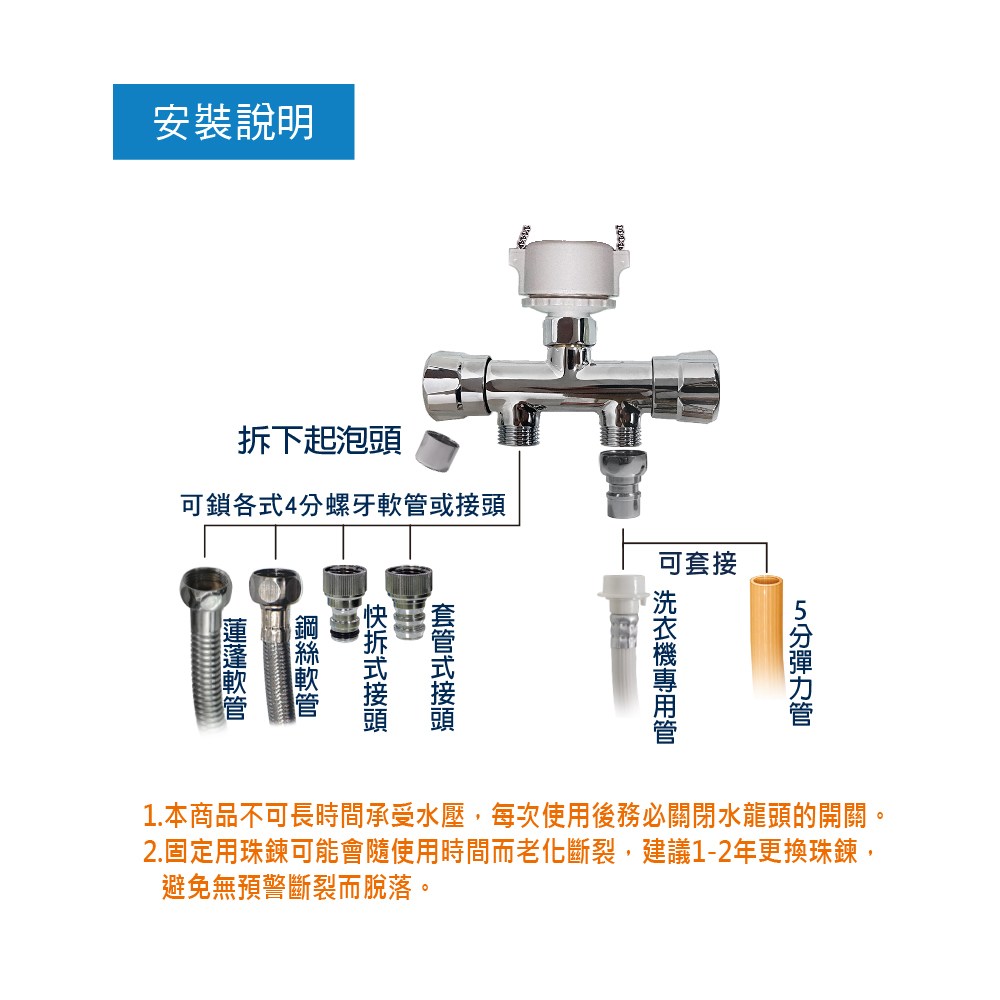 水龍頭分流器 兩臺洗衣機龍頭一分二排水分流兩根進水管一拖二三通分水器轉接頭 【CM5830】