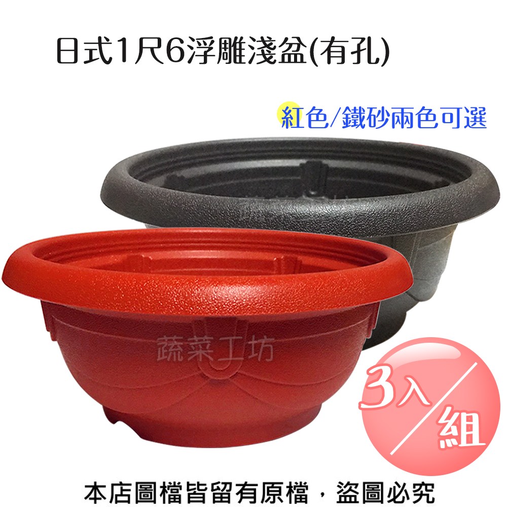 日式1尺6浮雕淺盆(有孔.外銷日本款)3入/組