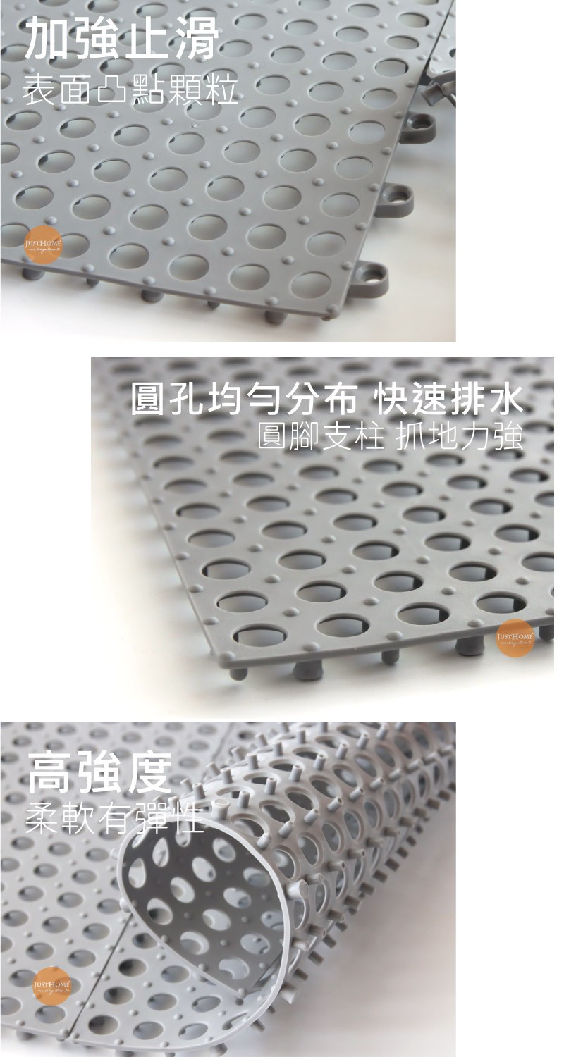 ●本產品不可於開放平面獨立使用,請務必使用於有四邊壁面或立面的空間並緊密鋪滿,以達到本產品之防滑效果。