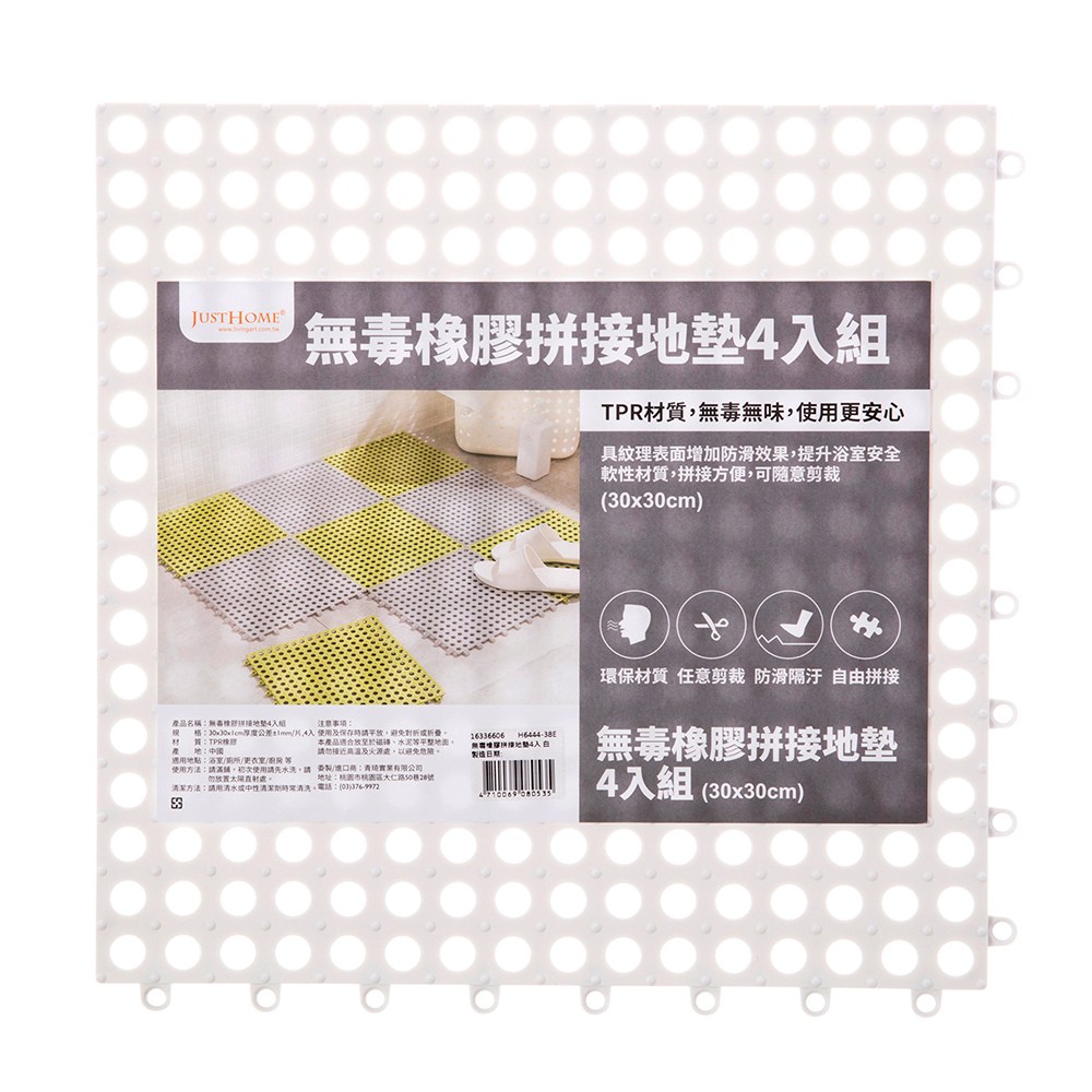 無毒橡膠浴室拼接地墊4入 組合 白色