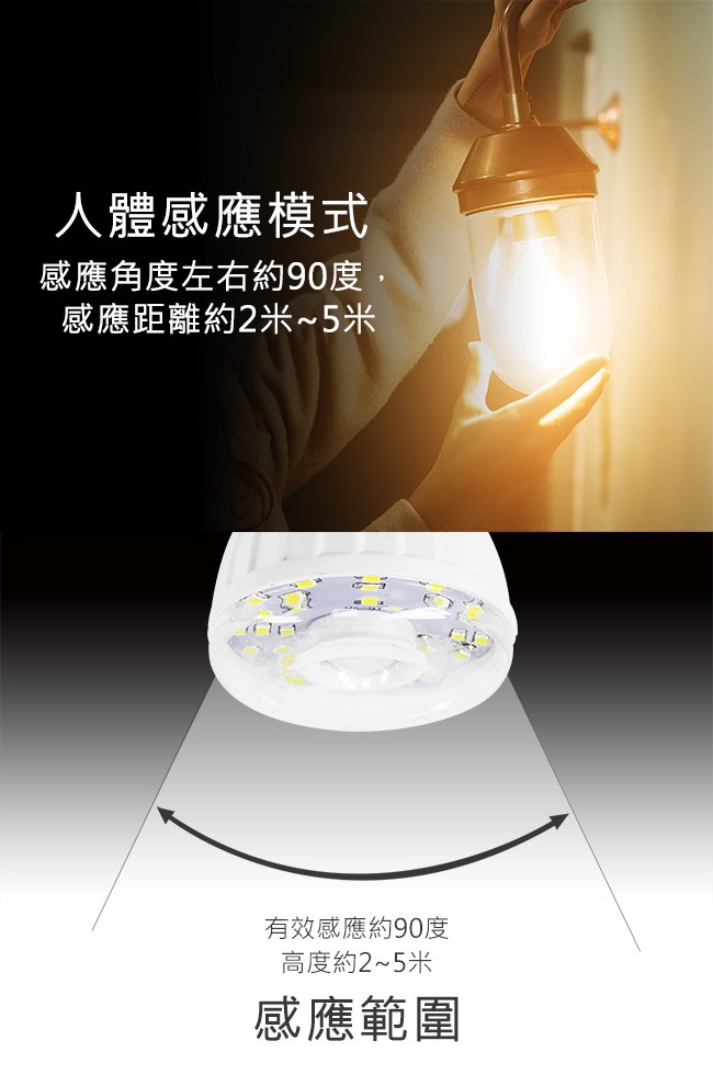 ◆紅外線人體感應器及光敏器,感應角度左右約90度(左右各45度)它是屬於室內用燈,感應距離約2米~5米(工作溫度0℃-35℃), 超過35℃靈敏度降至2米以下。