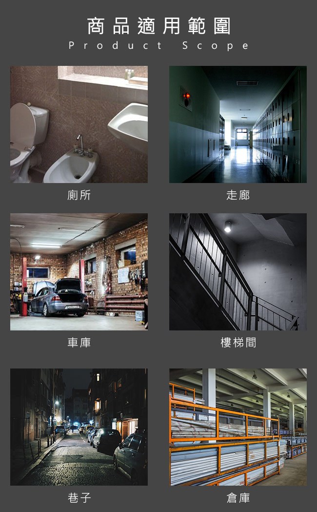 走廊、車庫、樓梯間、廁所、巷子、倉庫...等。