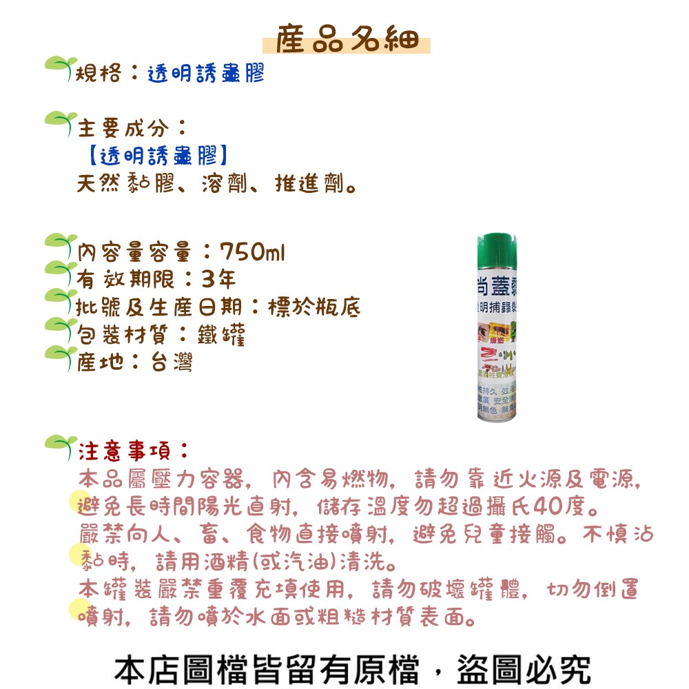 【透明誘蟲膠】 天然黏膠、溶劑、推進劑。