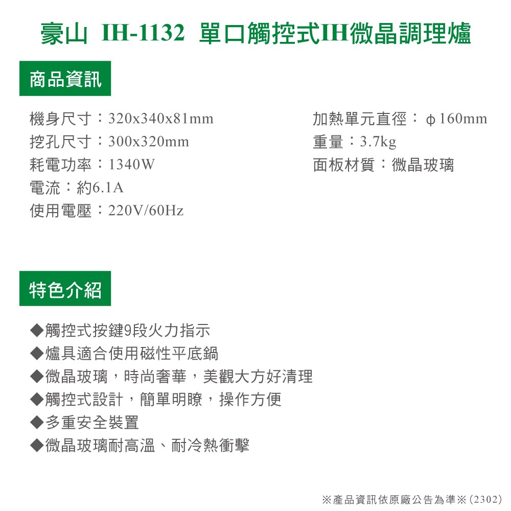 ※產品資訊依原廠公告為準※(2302C)