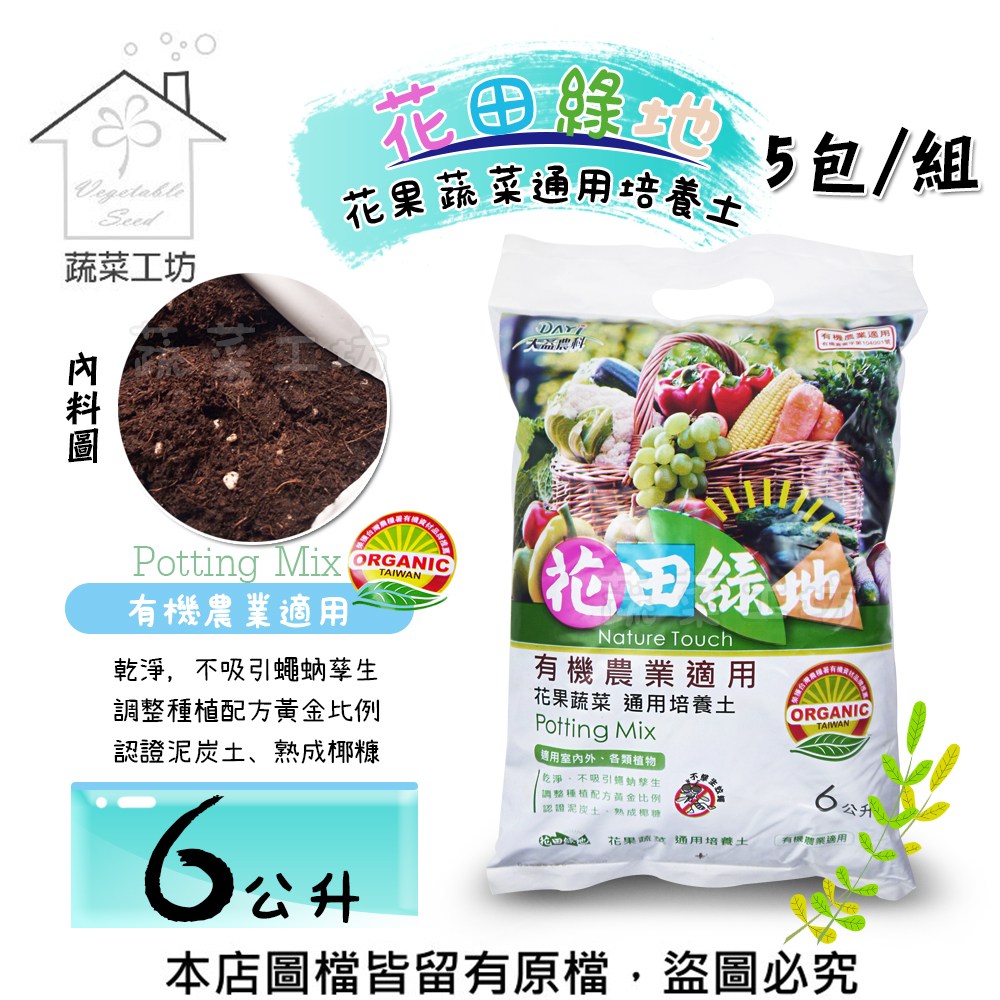 花田綠地花果蔬菜通用培養土6公升 - 5包/組●泥炭土●