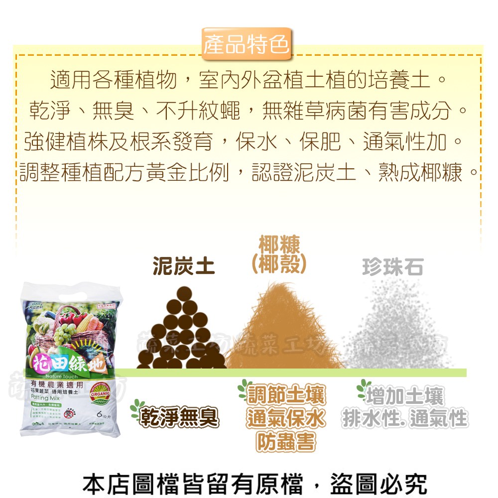 ●適用各種植物,室內外盆植土植的培養土。