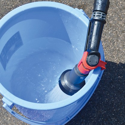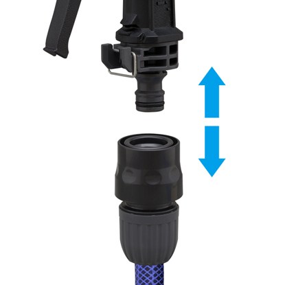 輕巧好用的灑水噴頭。手把修長又好握,輕壓即可與簡易鎖連動保持噴水狀態,減輕噴水時的手部負擔。