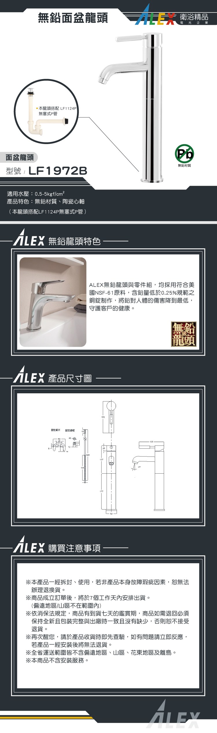 ALEX 電光 無鉛級 面盆龍頭 LF1972B
