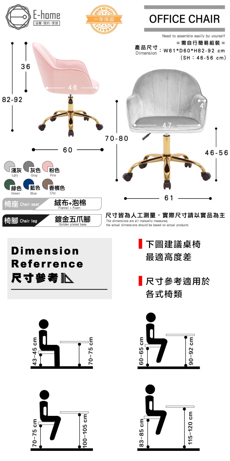 產品尺寸:W61*D60*H82-92 cm(SH:46-56 cm)