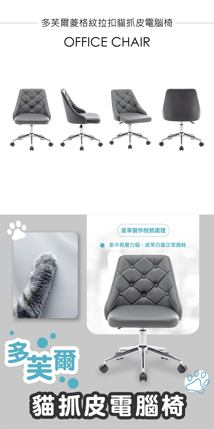 [E-home]多芙爾菱格紋拉扣貓抓皮電腦椅,超夯貓抓皮電腦椅,寵物族首選,享受輕鬆自在的互動。
