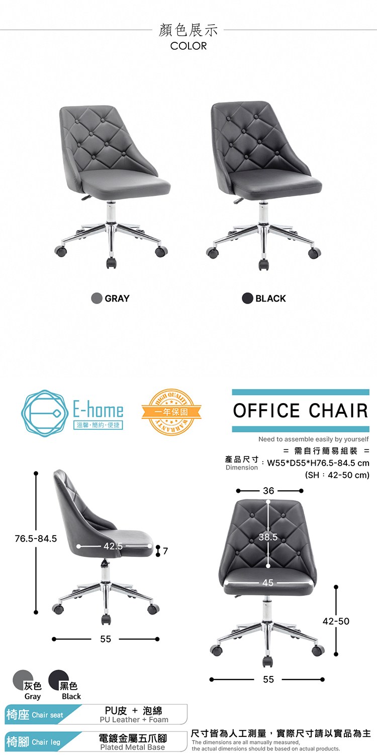 產品尺寸:W55*D55*H76.5-84.5 cm (SH:42-50 cm)