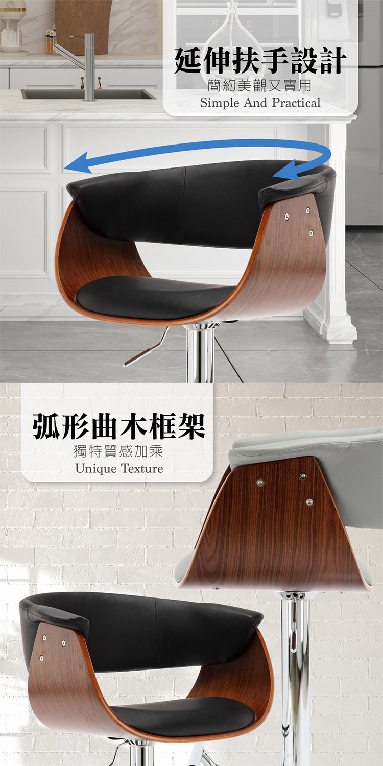 延伸的扶手設計簡約美觀又實用,搭配獨特弧形曲木框架質感加乘,高密度泡棉椅背及椅座坐感舒適,