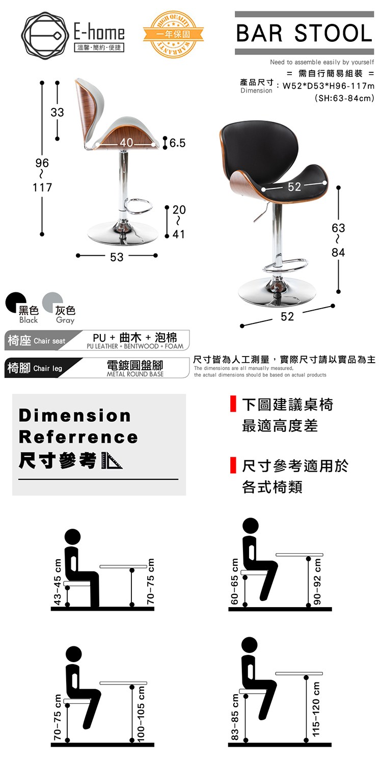 正常使用下,結構保固一年,立即添加到購物車,您將體驗此吧檯椅帶給您的舒適性與生活變化!