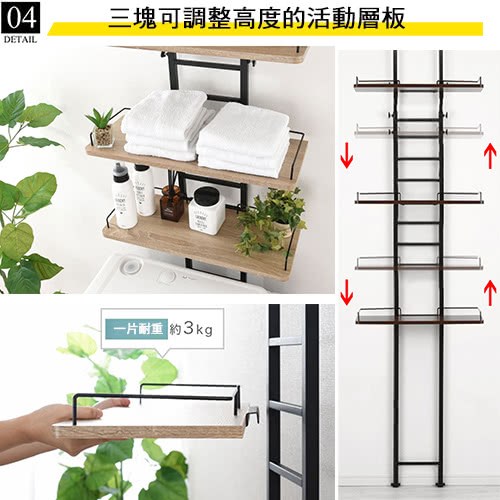 《C&B》頂天立地壁面多用途衛浴洗衣機置物架,是日本針對現今居家空間的收納需求所設計出來的實用好物,並在日本購物網站的銷售排行榜常佔領前幾名的銷售佳績,『鐵』+『木』的組合,整體營造出工業風格,高質感有格調,100%台灣生產,採用符合日本市場要求的板材,防刮耐潑水易清理,鐵管則是高質感的粉體塗裝烤漆,無論是層板的用料或鐵管的厚度與規格皆是外銷商品的要求,質感佳耐用性強。