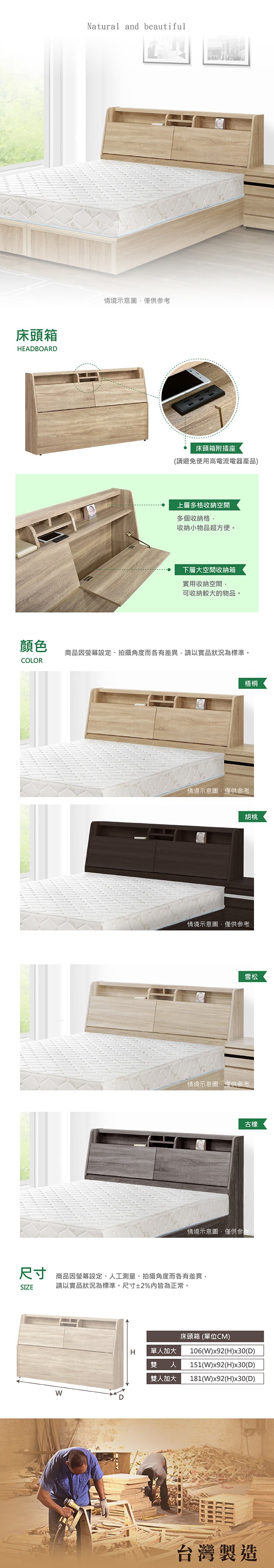 傢俱工場-派蒙 簡約收納房間2件組(床頭箱+六分床底)-雙大6尺古橡