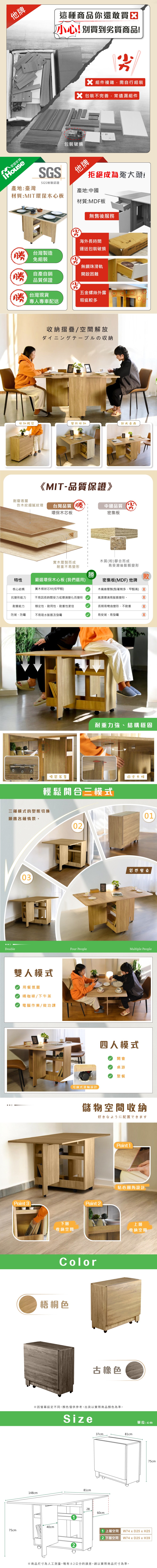IHouse-團原【免組裝】台灣製可移動收納 餐桌/摺疊桌/折疊桌/蝴蝶桌古橡