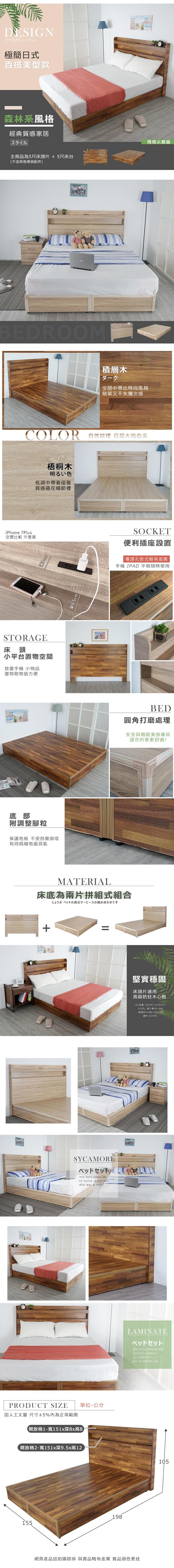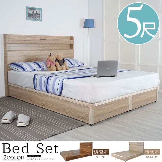 傢俱工場-吉米 MIT木心板床組 (插座床箱+床底) - 雙人5尺梧桐