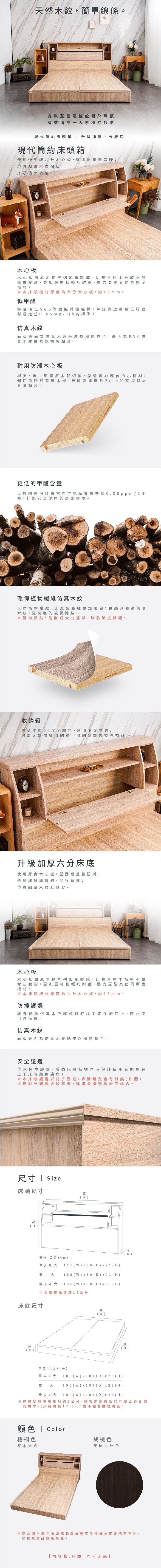 源氏木語西雅圖橡木原木色斜靠雙人5尺150x190夜燈低舖床架 Y90B28 (H014324397)