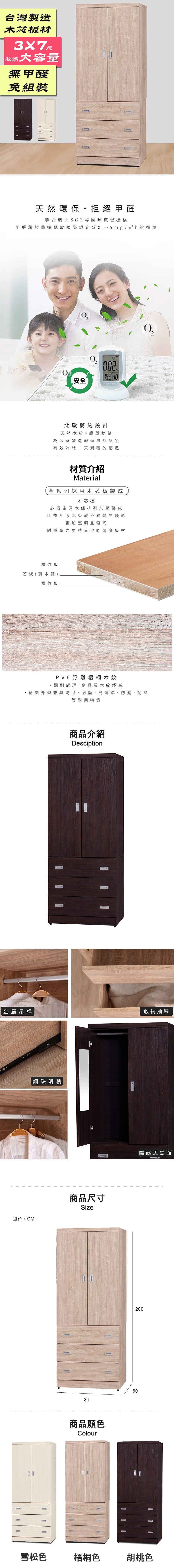Homelike 喜家居2.5尺三抽衣櫃(1541)-77x54x201cm