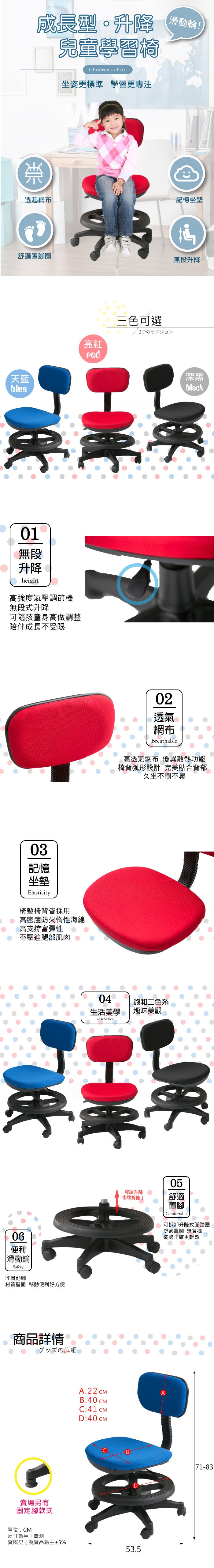 A1-點點繽紛固定式D扶手兒童成長電腦椅 箱裝出貨 2色可選 1入