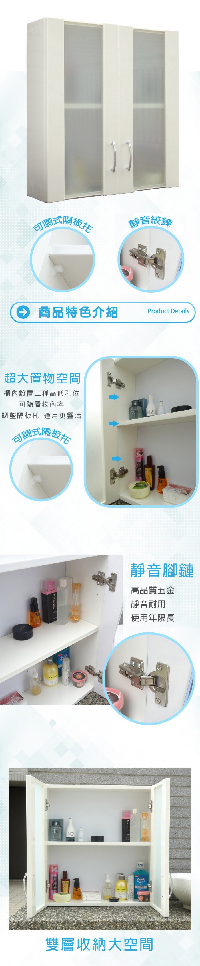 文創集-南亞塑鋼 艾格 南亞塑鋼2.1尺雙開門衛浴吊櫃/收納櫃-62.7x23.5x65cm免組