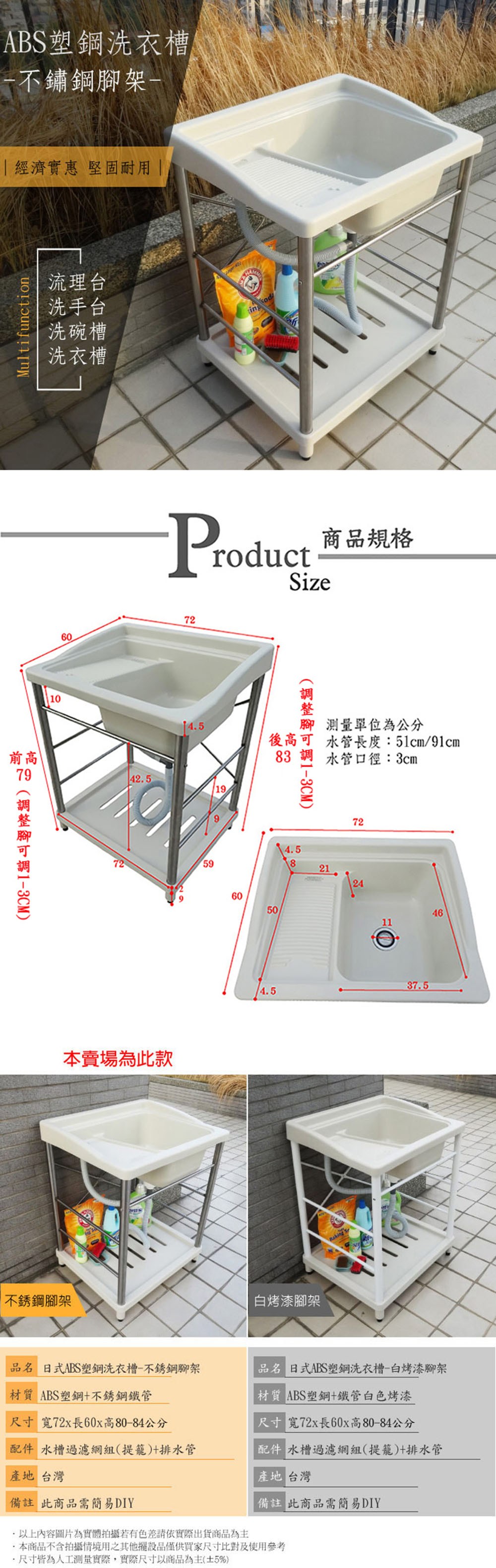 新式大型塑鋼洗衣槽 水槽 洗手台(不鏽鋼腳架)-1入