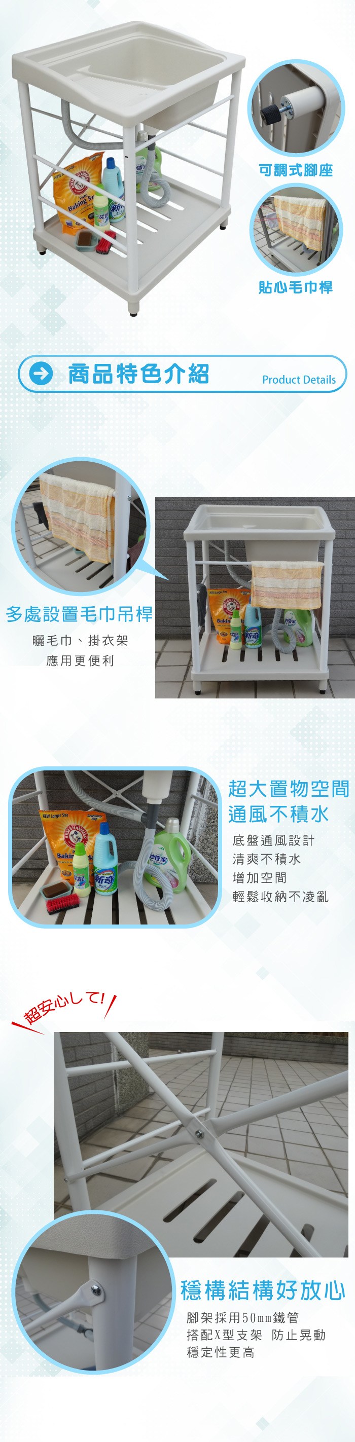 新式大型塑鋼洗衣槽 水槽 洗手台(白烤漆腳架)-1入