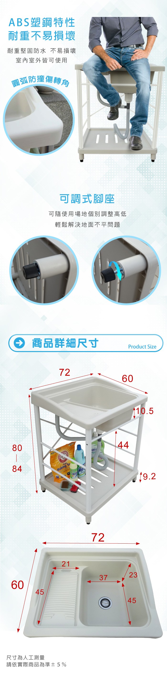 中型塑鋼洗衣槽/水槽/已預留單栓龍頭安裝孔