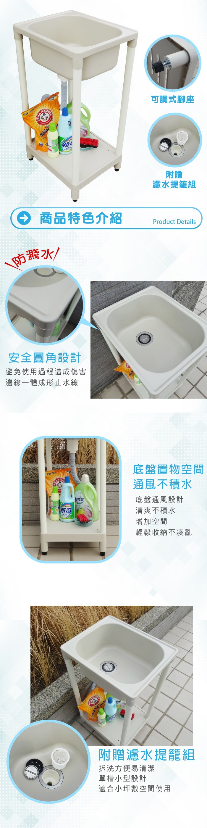 新式小型單槽塑鋼水槽 洗衣槽 洗手台-1入