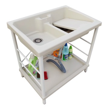 新式中型單槽塑鋼水槽 洗衣槽 洗手台(附洗衣板)-1入