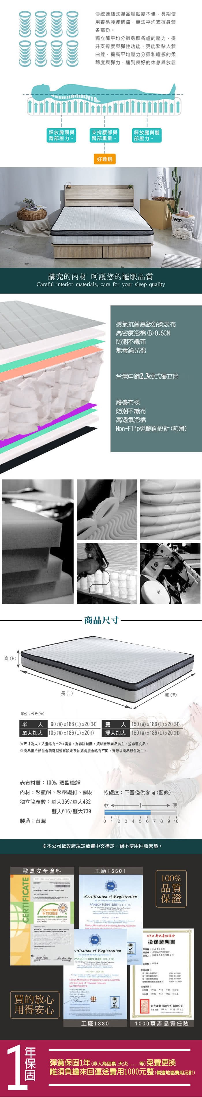 IHouse-日式匠心床頭+6分底+獨立筒床墊 房間組三件 單大3.5尺梧桐