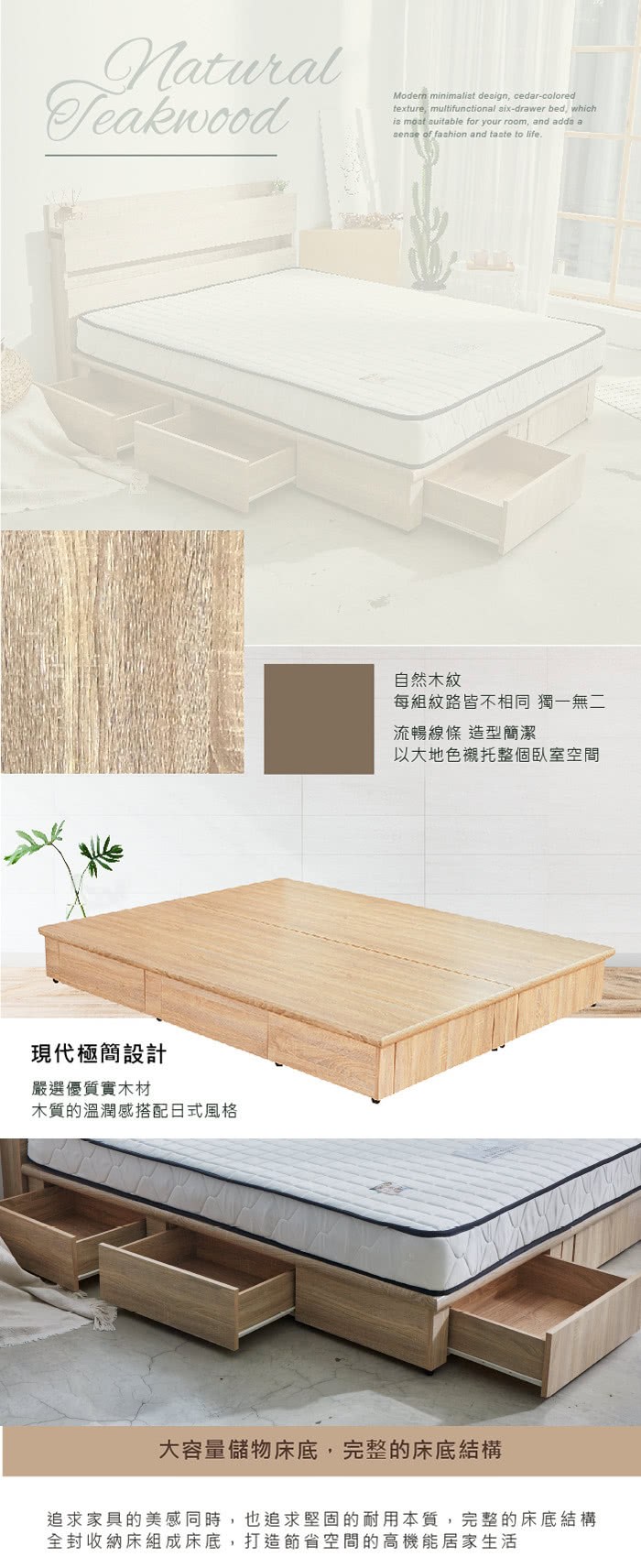 Homelike 喜家居雙人加大6尺六抽屜床組-原木色(2531)