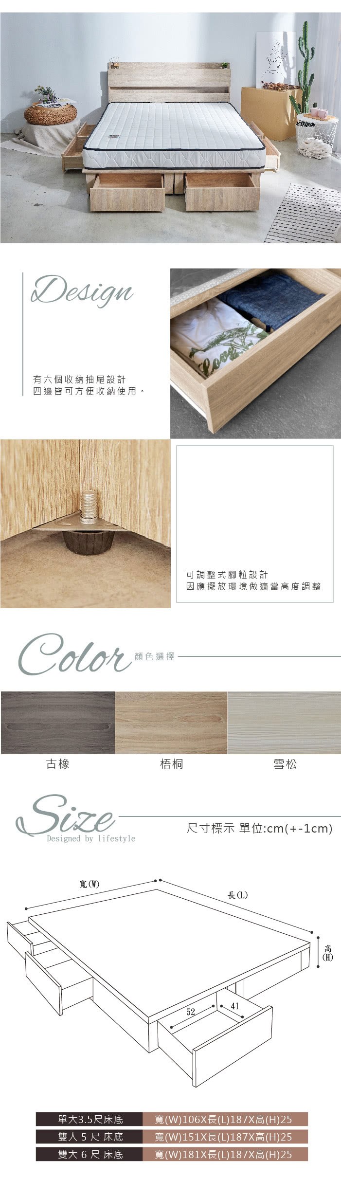 AS雅司-松樂5尺四抽收納床底-152x188x26cm--只有床底