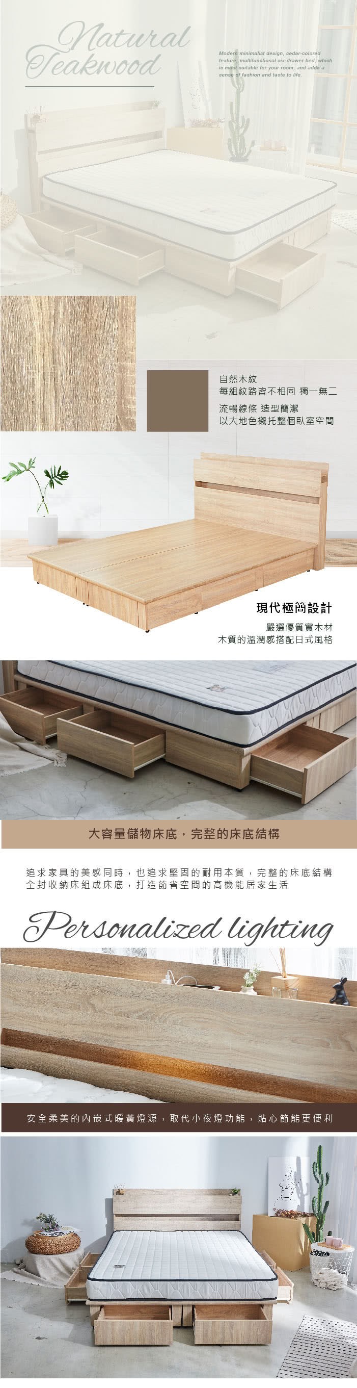 Homelike 喜家居雙人加大6尺六抽屜床組-原木色(2531)