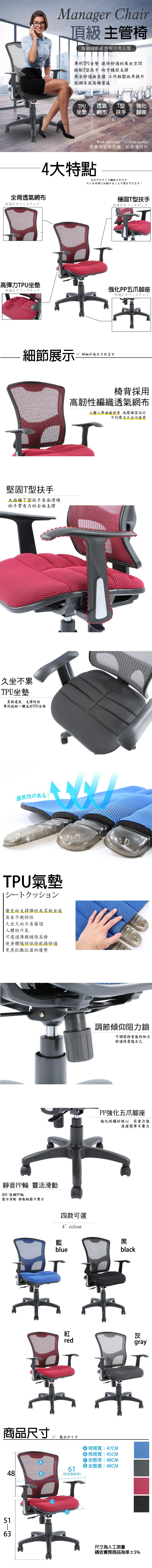 台灣製造 SGS認證 ND-02B 透氣辦公椅-紅(63*49*106cm)_廠商直送