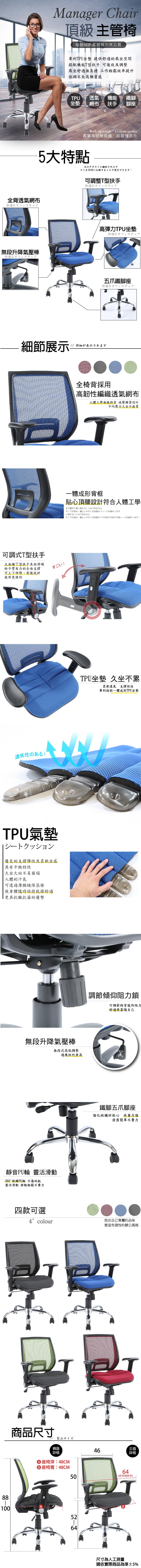 BuyJM台灣製升降椅背防潑水成型泡棉座墊扶手辦公椅/電腦椅藍色