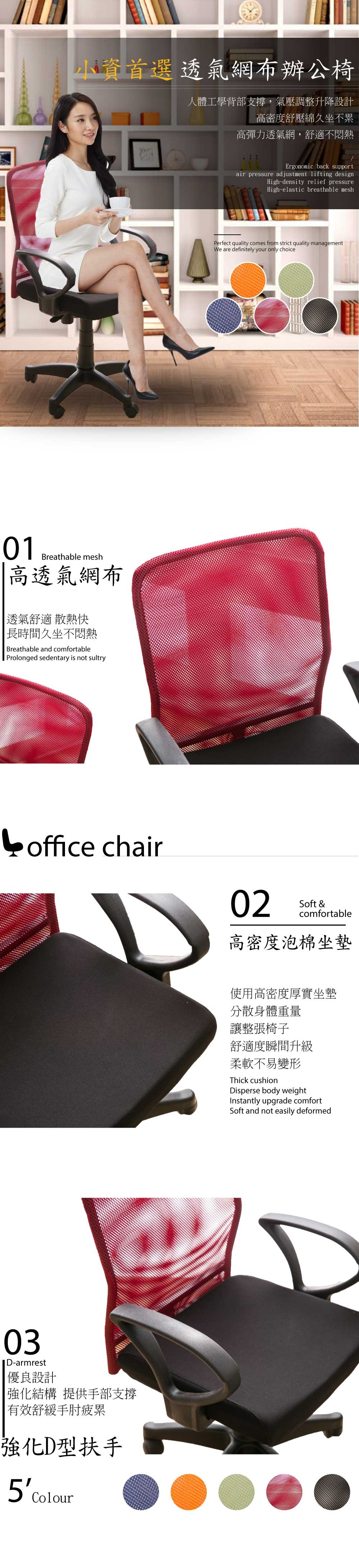 A1-馬卡龍高透氣網布D扶手電腦椅 辦公椅 5色可選 1入(箱裝出貨)