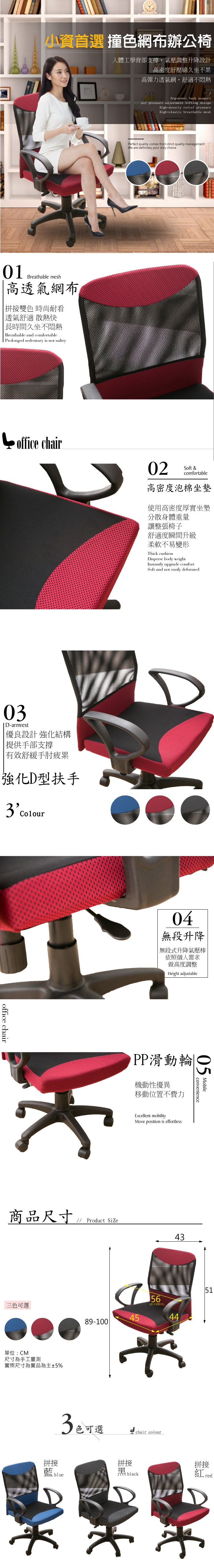 RICHOME 三色可選 粉彩人體工學網椅 辦公椅 網椅 電腦椅 網布升降椅 繽紛電腦椅 CH1408