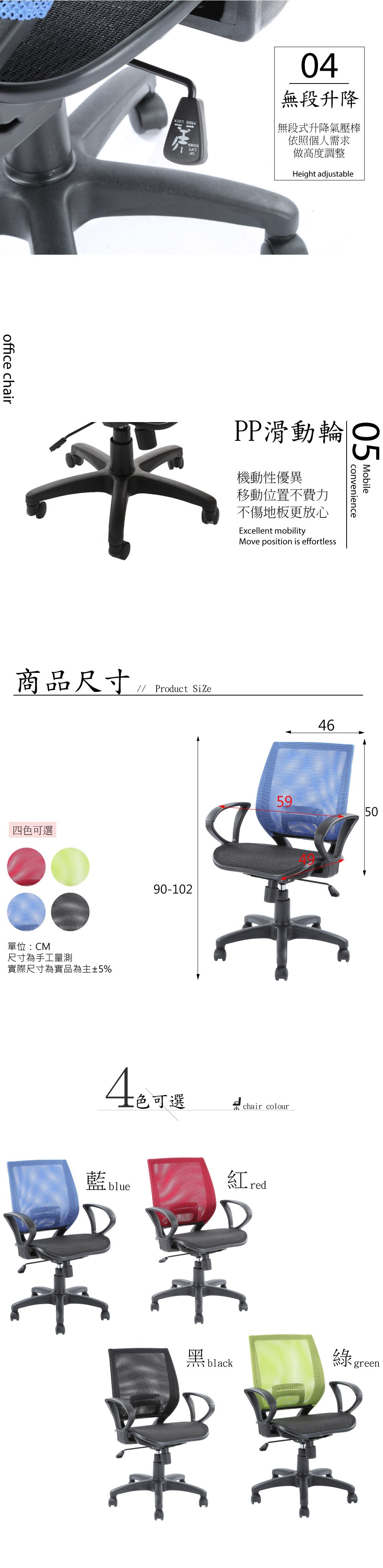 A1-馬卡龍高透氣網布D扶手電腦椅 辦公椅 5色可選 2入(箱裝出貨)