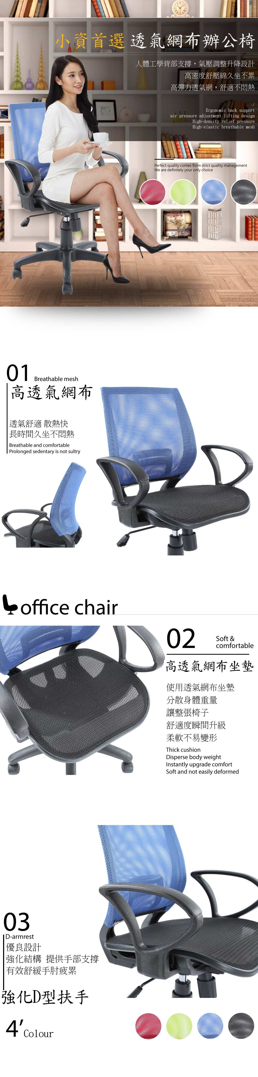 點我下載【A1】超世代全網透氣D扶手電腦椅/辦公椅-2入(箱裝出貨)綠色