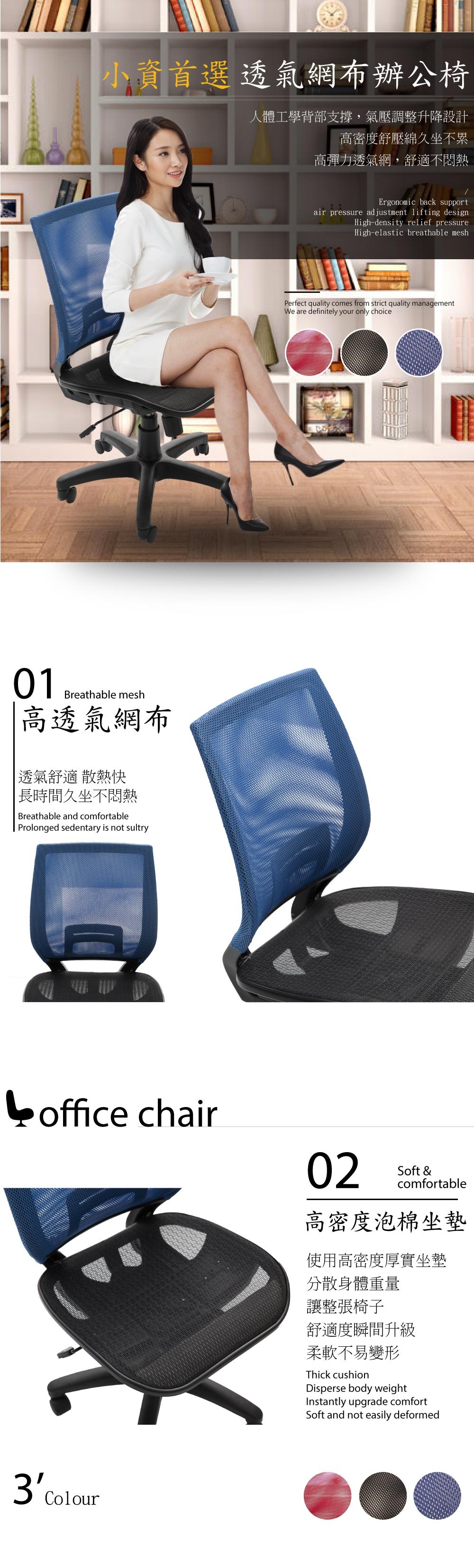 A1-超世代全網透氣D扶手電腦椅 辦公椅 4色可選 1入(箱裝出貨)