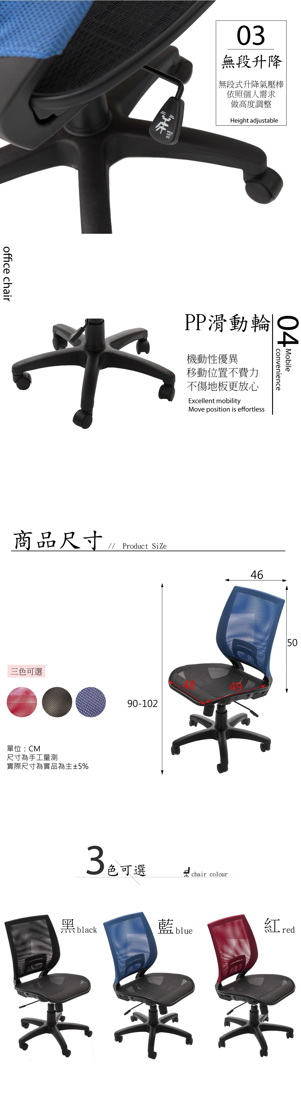 【A1】傑尼斯透氣網布無扶手電腦椅/辦公椅-1入(箱裝出貨)藍色