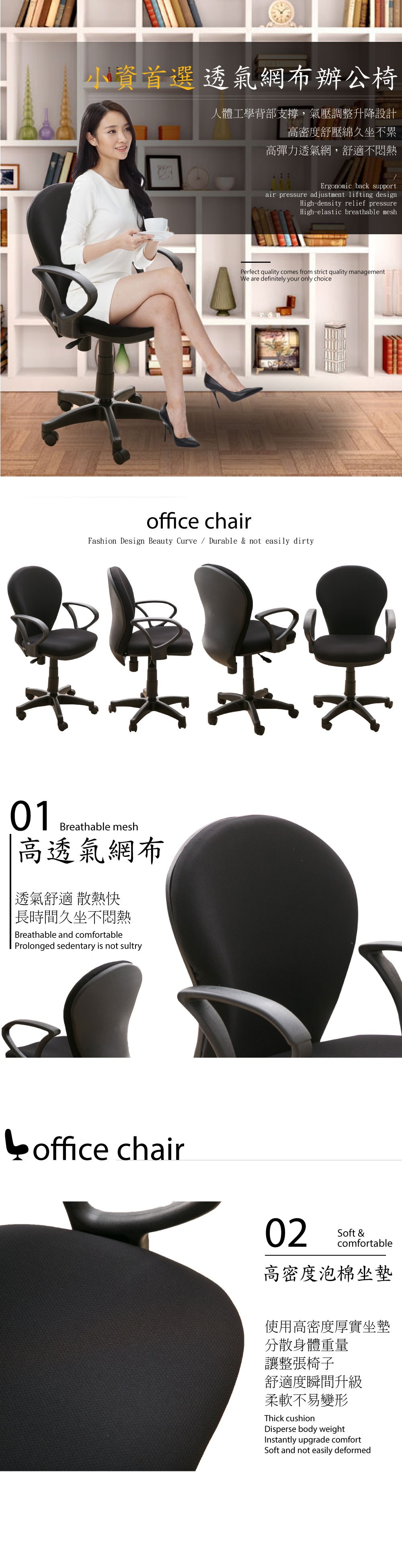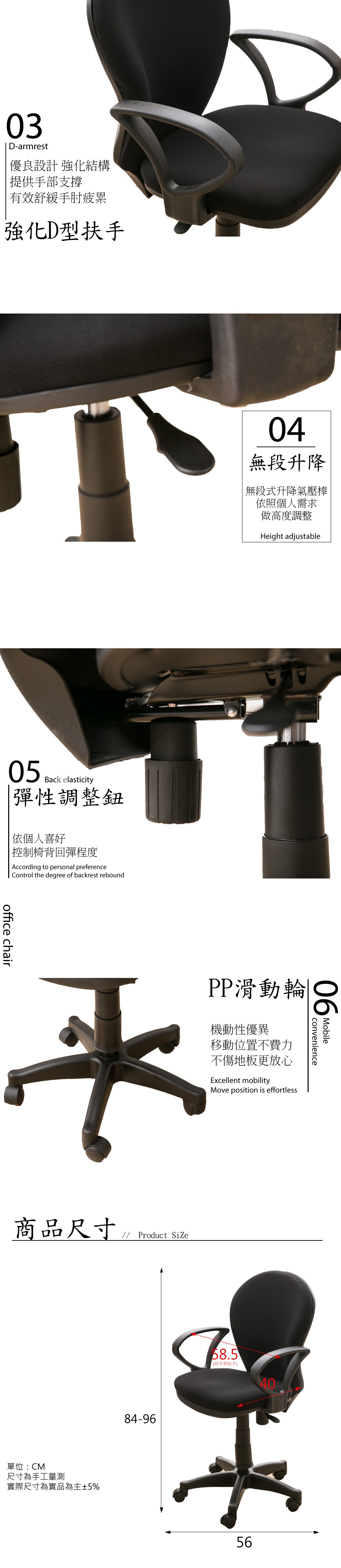 台灣製舒適辦公椅 NP-07 黑色 - 人體工學設計 透氣網布 可調節高度 20 x 10 x 2cm