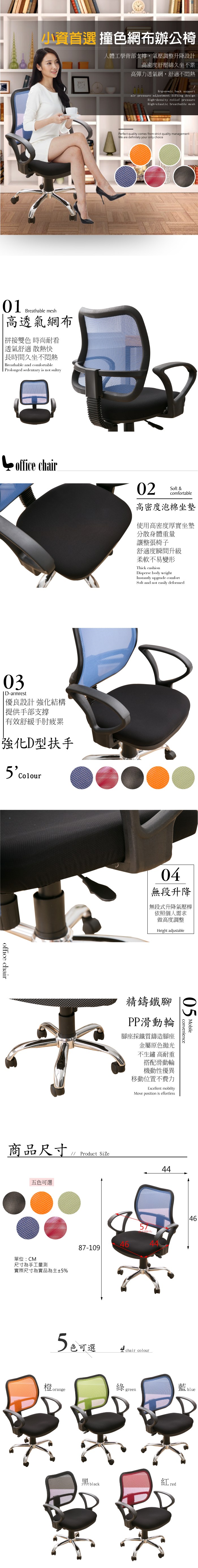 RICHOME 三色可選 粉彩人體工學網椅 辦公椅 網椅 電腦椅 網布升降椅 繽紛電腦椅 CH1408