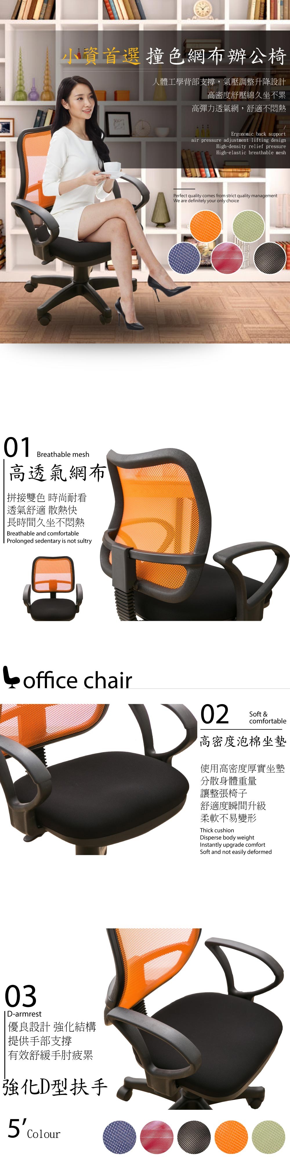 【A1】馬卡龍高透氣網布D扶手電腦椅-1入(箱裝出貨)橘色