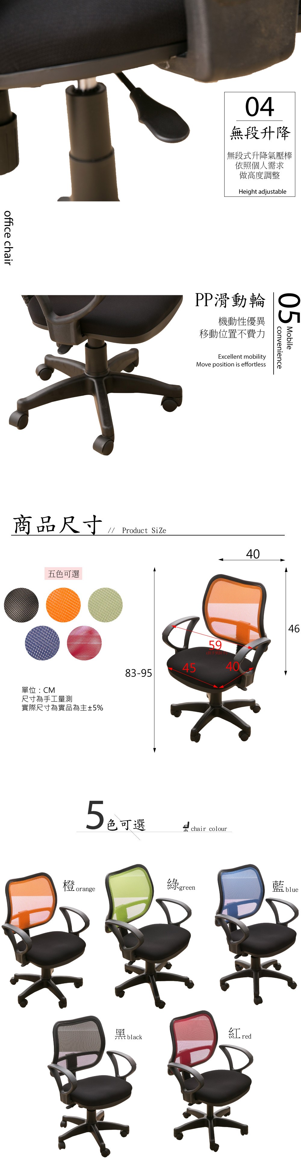 A1-馬卡龍高透氣網布D扶手電腦椅 辦公椅 5色可選 1入(箱裝出貨)