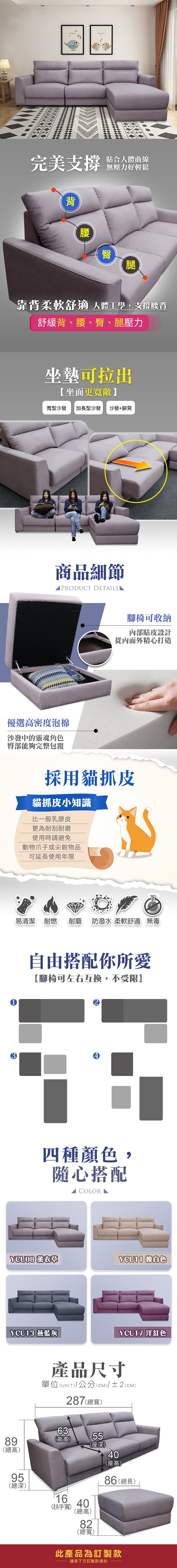 AS雅司-諾艾爾貓抓皮L型沙發(整組)(灰色) (另可訂做六色)