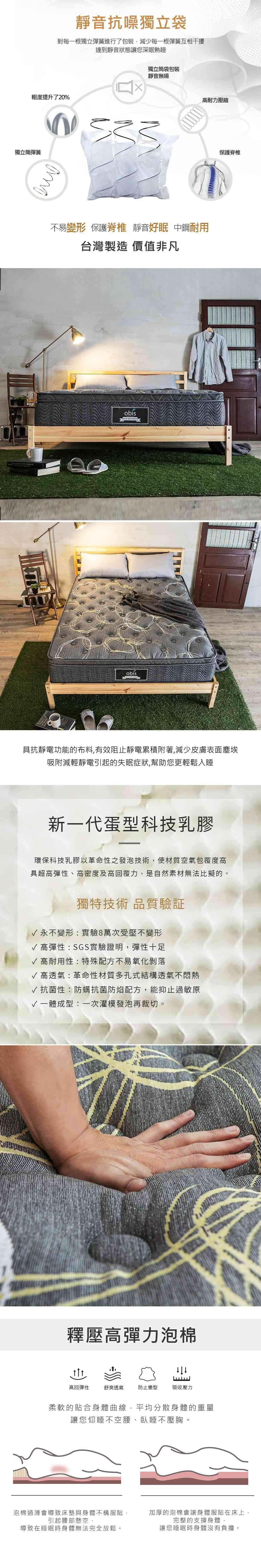 【obis】GALAXY銀離子系列乳膠獨立筒床墊單人3.5X6.2尺